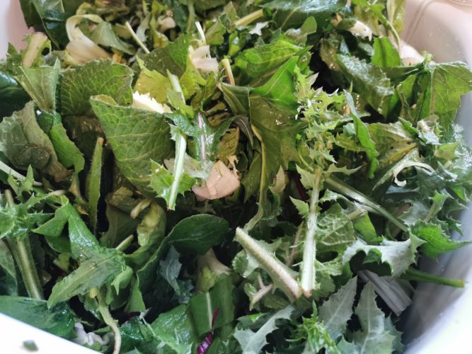Una ricetta tipica romana, un misto di erbe selvatiche come rucola, indivia, crescione, pimpinella, cicoria selvatica, finocchio selvatico, borragine, malva, aspraggine, tarassaco... reperibile nei campi della campagna romana, ottima da gustare sia cruda che cotta!