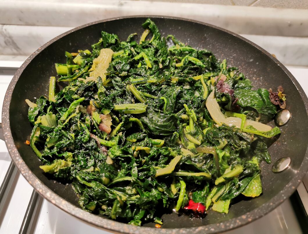 Lavate bene la misticanza, predisponete sul fuoco una pentola capiente, contenente meno della sua metà di acqua, salate, al bollore versate la misticanza un pò alla volta, così da metterla tutta, cuocete per circa 5-8 minuti.
